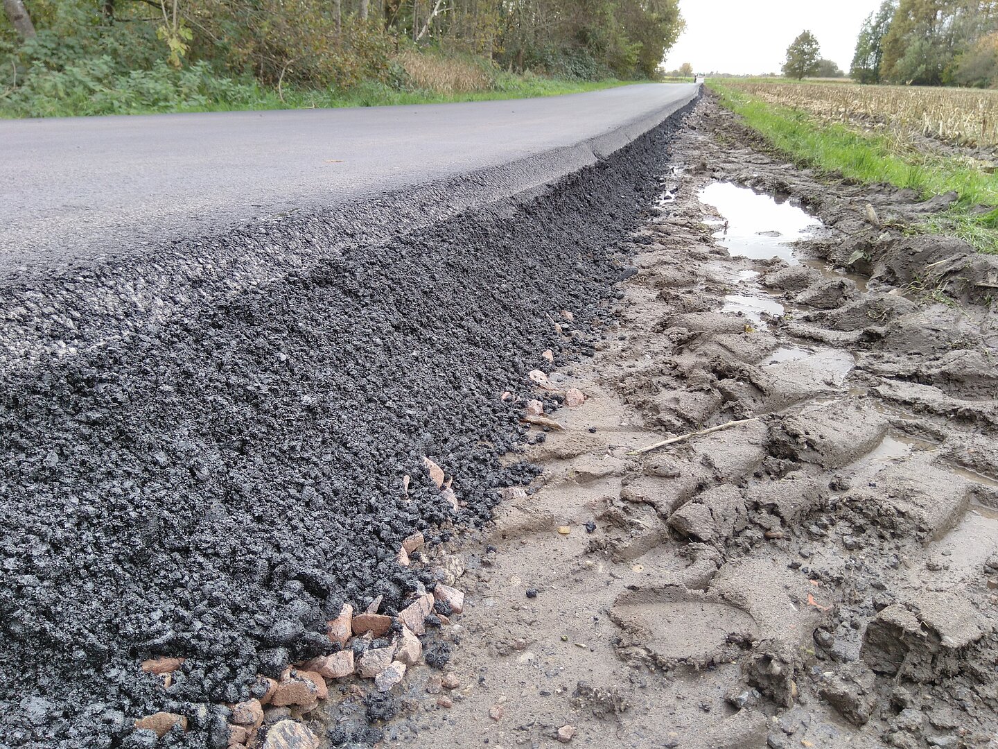 Geschädigte Wirtschaftswege werden gefräst. Das Fräsgut vor Ort einplaniert und mit neuer Trag- und Deckschicht ein langlebiger Aufbau hergestellt.